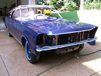 This car was being completely restored in the fall of 2013. Originally an emberglo and parchment color scheme, this rare convertible 4 speed was finished in ultra popular Guardsman Blue. |