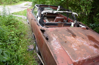 This one is a real shame. A very rare and highly sought after convertible 4speed in emberglo and emberglo. Left to the elements, there is not much left of this once fair maiden. |