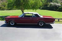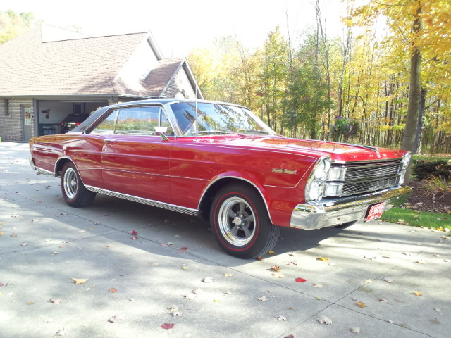 Another one of our friends North of the Border. This Black on black convertible was originally purchased from Beasley Ford Co. in Columbus, OH on April 13, 1966 by J. Shoemaker of Mt. Vernon. Was purchase by Chris in April 1982 from M. Froman of Bolivar, OH. It had 43,079 miles on it. Was imported to Canada, cleaned up, repainted, top repaired and they removed the original 428 engine for a Super Marauder 428 from a 66 Mercury. (To preserve the original motor). Original motor is stored