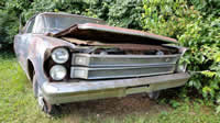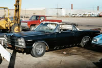 Steve found this Barn find in 2018. Black exterior, black interior, white top, automatic, Kansas title. Car located in Missouri. Previous owner had car since 1991. It was stated car has a locked up 352 engine. Car does not run and is getting a total restoration. Car is complete except for missing front bumper. Hard to find car. |