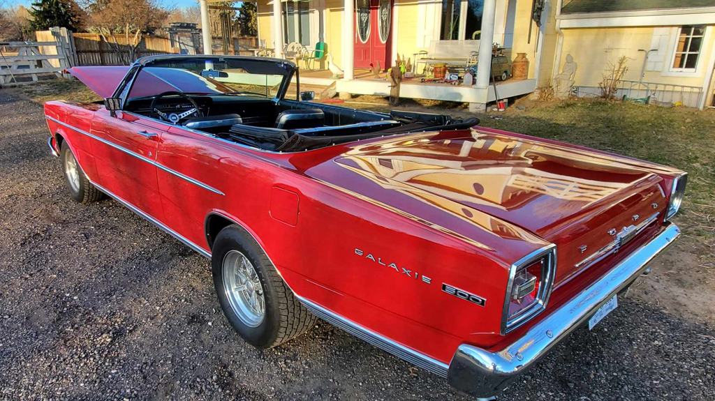 Hi all, One more 7 Litre is back on PA streets. First road drive since Spring 1981. Miles show under 38,000. May be tru- will probably never know. Engine is stock, except Holley carb, AC- 66 LTD type fan + clutch, and better flow 2 1/4 mufflers. Valve cover Gaskets were Ford stapled to covers- never opened. Biggest challenge may have been glass replacement in pass door, and rear 1/4 replacement. Top frame and canvass still need done. I used 1 stage Urethane Original type Silver Frost paint. Car needed lots of basic stuff- fuel tank swaps, frame welds, fresh rear springs, ect. The car is not all done- then again, are they ever? |