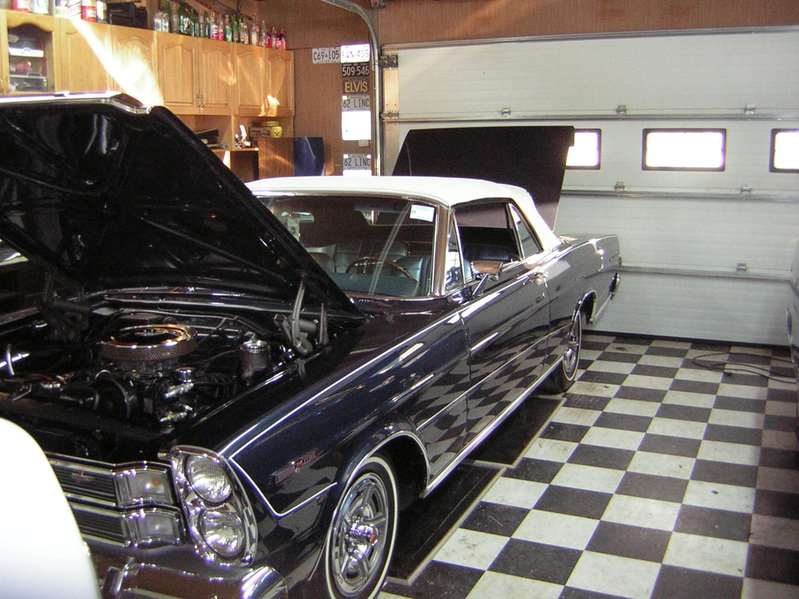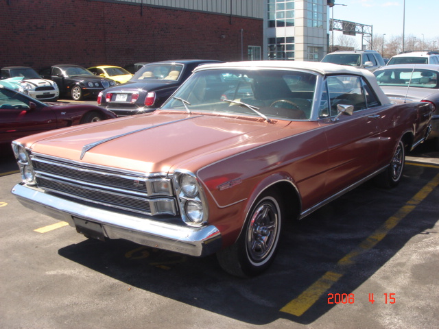 Scott was looking for a 1966 XL convertible, and placed an ad. Here's his story. "A guy calls me up and says, I have a 500 convertible, but it's a 7 Litre. A little banged up, needs a top, some interior work, but I need to get rid of it, the wife is pregnant. And oh, by the way, it is a 4 speed, hope you don't mind. This guy is in Wisconsin so I made it up that way to look at it, and indeed, a lot of work was needed, but was drivable. He wanted a bit much for it, so I tell him I need to think about it, and ended up calling him when we got back to Colorado a month later. We neded up agreeing on a price. The car has A/C, and a power drivers seat. The original motor is long gone. The paint and pin stripe is original, except where there is previous damage. But it is about 60% original paint. Emberglo, with Parchment interior. I have put new carpet in it, replaced the rear floor pans, rebuilt transmission, new tires, a new exhaust system with Flowmasters. |
