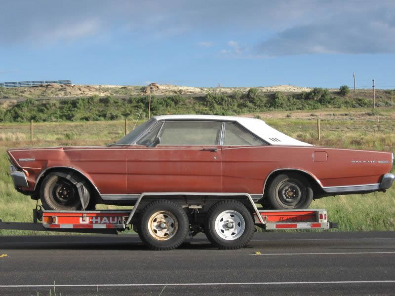 This one comes to us from our new friend Joe Motroni. It was spotted on the way to a car show in Pacifica, CA, near San Francisco. Originally Ivy Green, it now appears to be Silver Frost.The Galaxie is owned by truck driver who's had it in his possession for 15 years. He said the engine was rebuilt when he first got the car. When the engine was started it smoke a little so it looks like it might need some more engine work plus, as the pictures show, quite a bit of other restoration. He also said he has a lot of the trim work and emblems as well as other spare parts for the car.