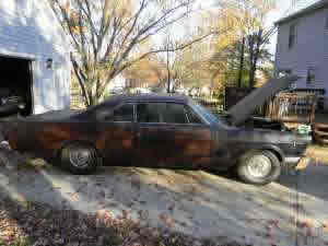 100% complete and remarkably, remarkably original. nightmist blue with medium-blue interior. Last on the road in 1990. Stored outdoors for about 10 years, then sat in dry indoor storage since 2000. It is currently NOT road worthy. Needs a new frame as well as entire brake and exhaust systems. Car will need a complete restoration, but has never been touched. |