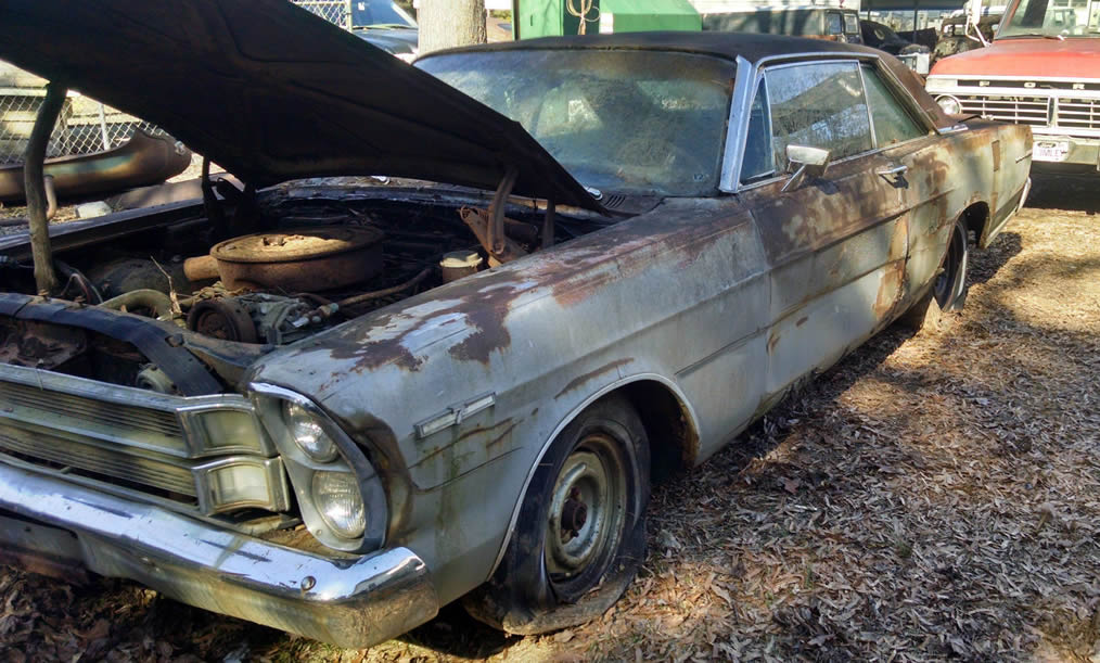 This car is scheduled to be parted out. This was a car we had known about in VIN only. We never had any information or photos of the car itself. Tom Yanulaytis of the 66 Full Size Ford Registry founfd the VIN on a website call decode this. Shame that it is to be parted, but at least we can account for it. |